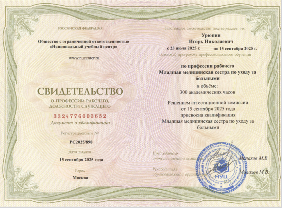 Младшая медицинская сестра по уходу за больными. Москва 2025 г.